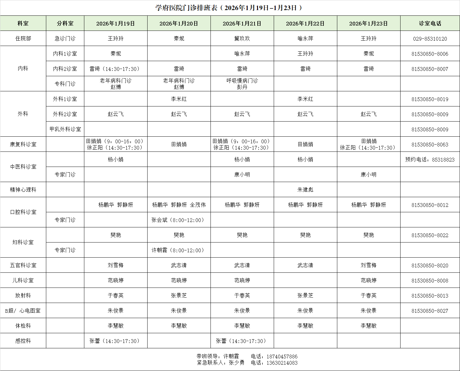雁塔校区医院社区卫生服务站 029-85308977