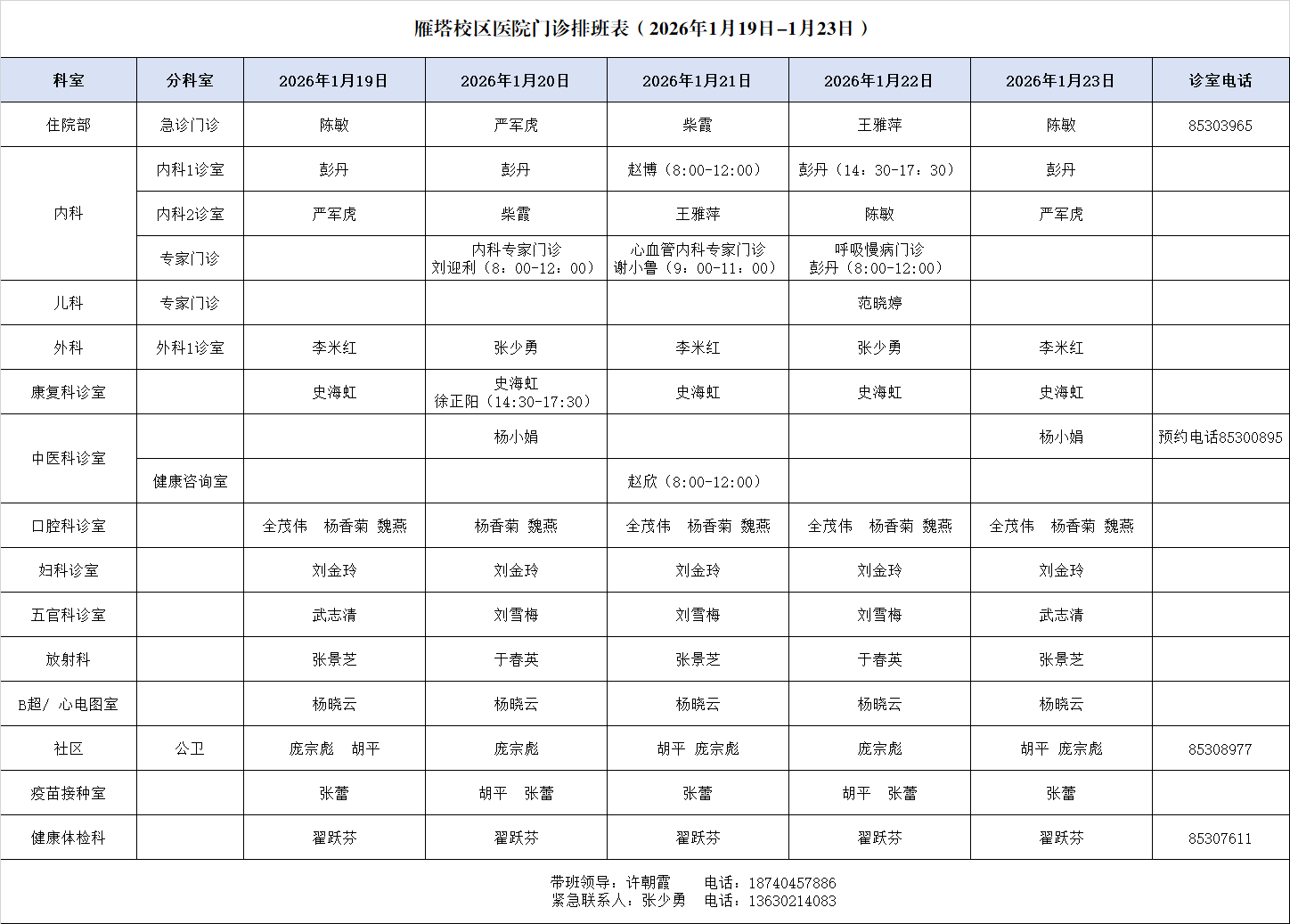 4.医院对校内师生开展健康保障,两校区开通校内24小时急救电话: