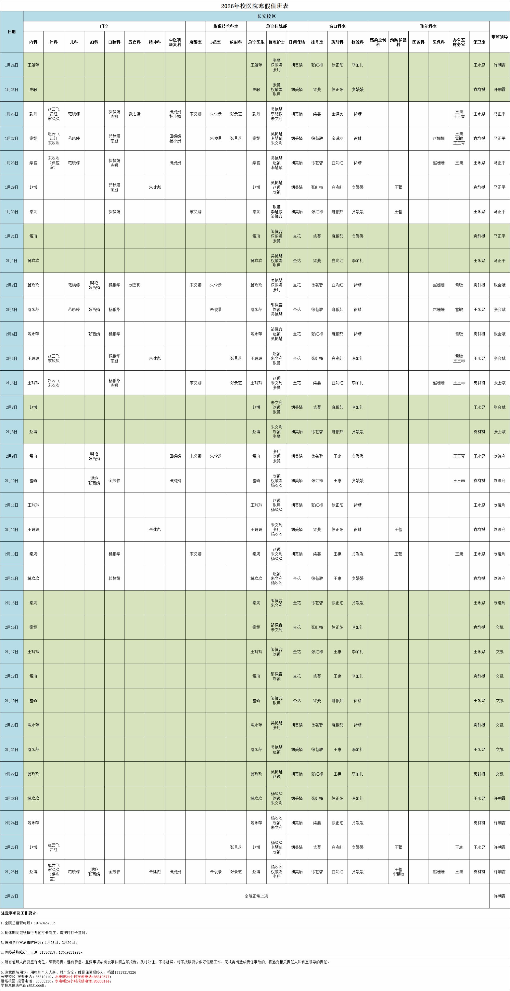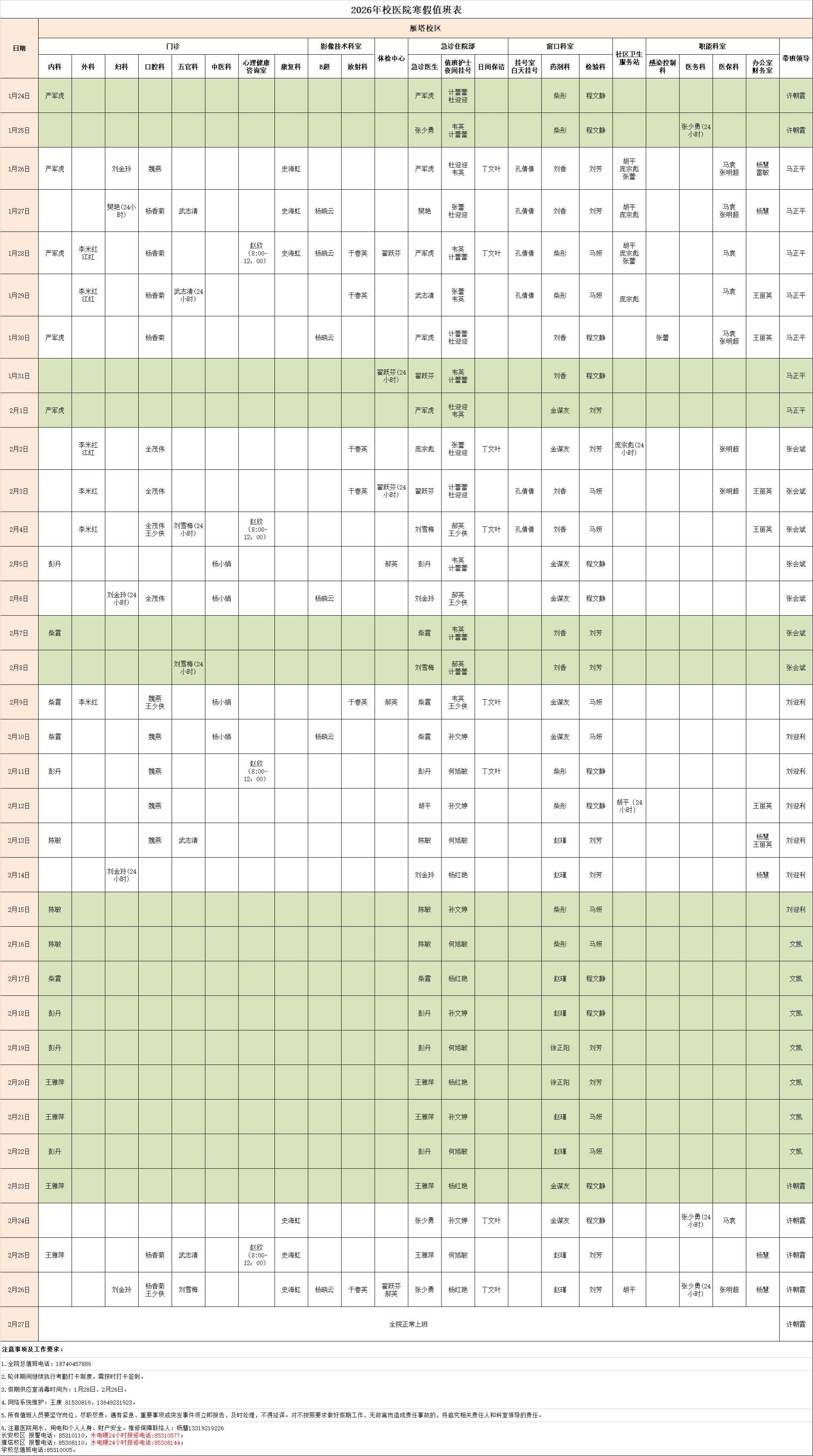 2.学校寒假期间,医院自2026年1月24日开始至2月26日,执行轮休制,科室接诊、工作时间以排班表为准,请师生、居民注意。