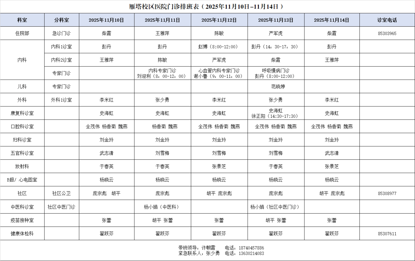 雁塔校区医院社区卫生服务站 029-85308977