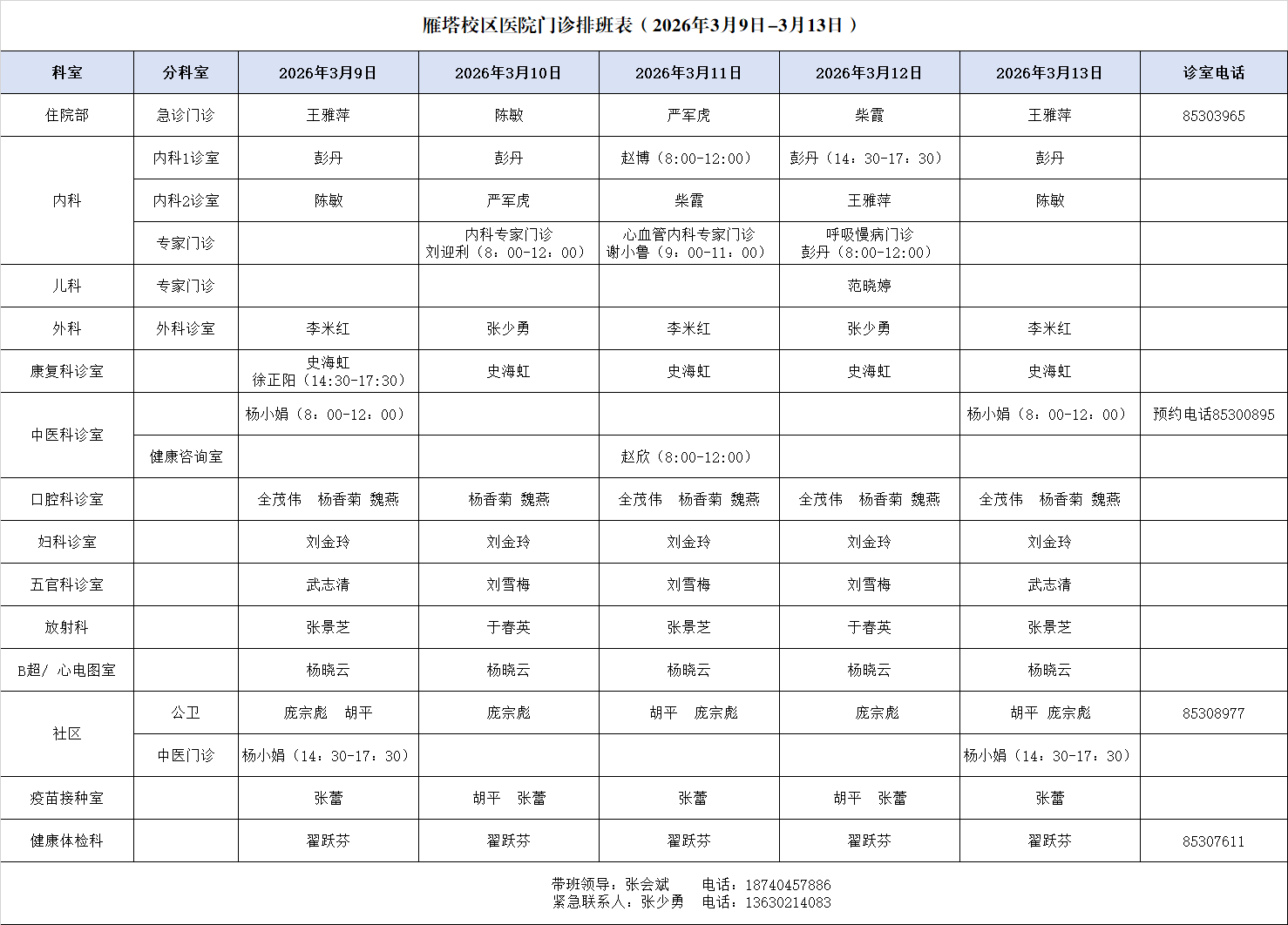雁塔校区医院社区卫生服务站 029-85308977