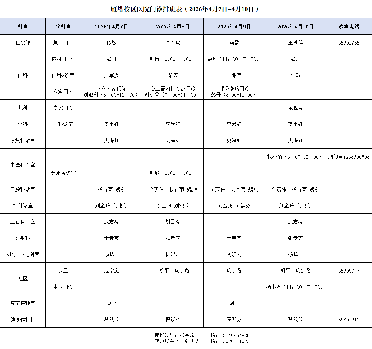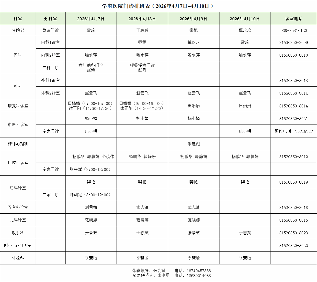 ※4月4日-4月6日清明节,医院开展急诊诊疗。4月7日起正常上班。