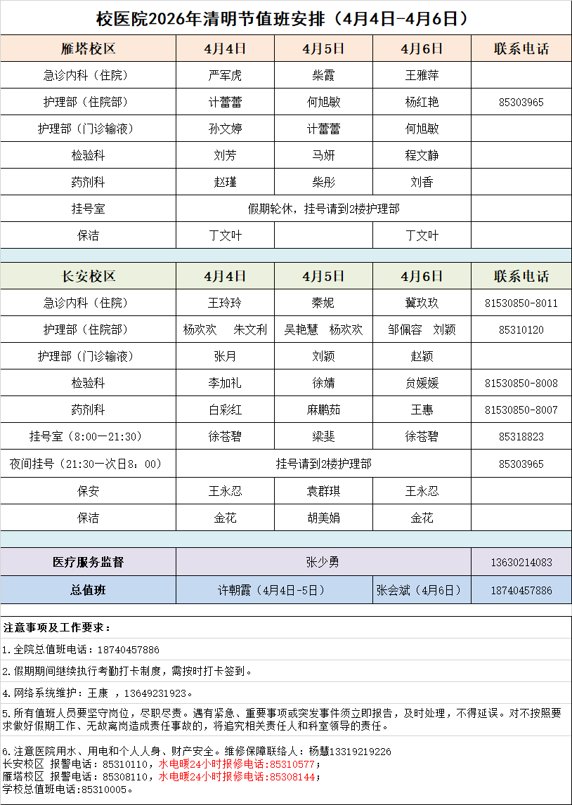 029-85307611(校内师生,雁塔区校外居民或单位)