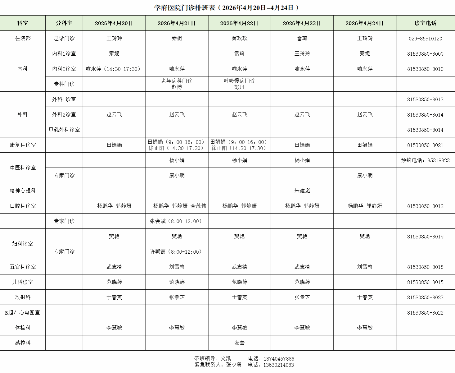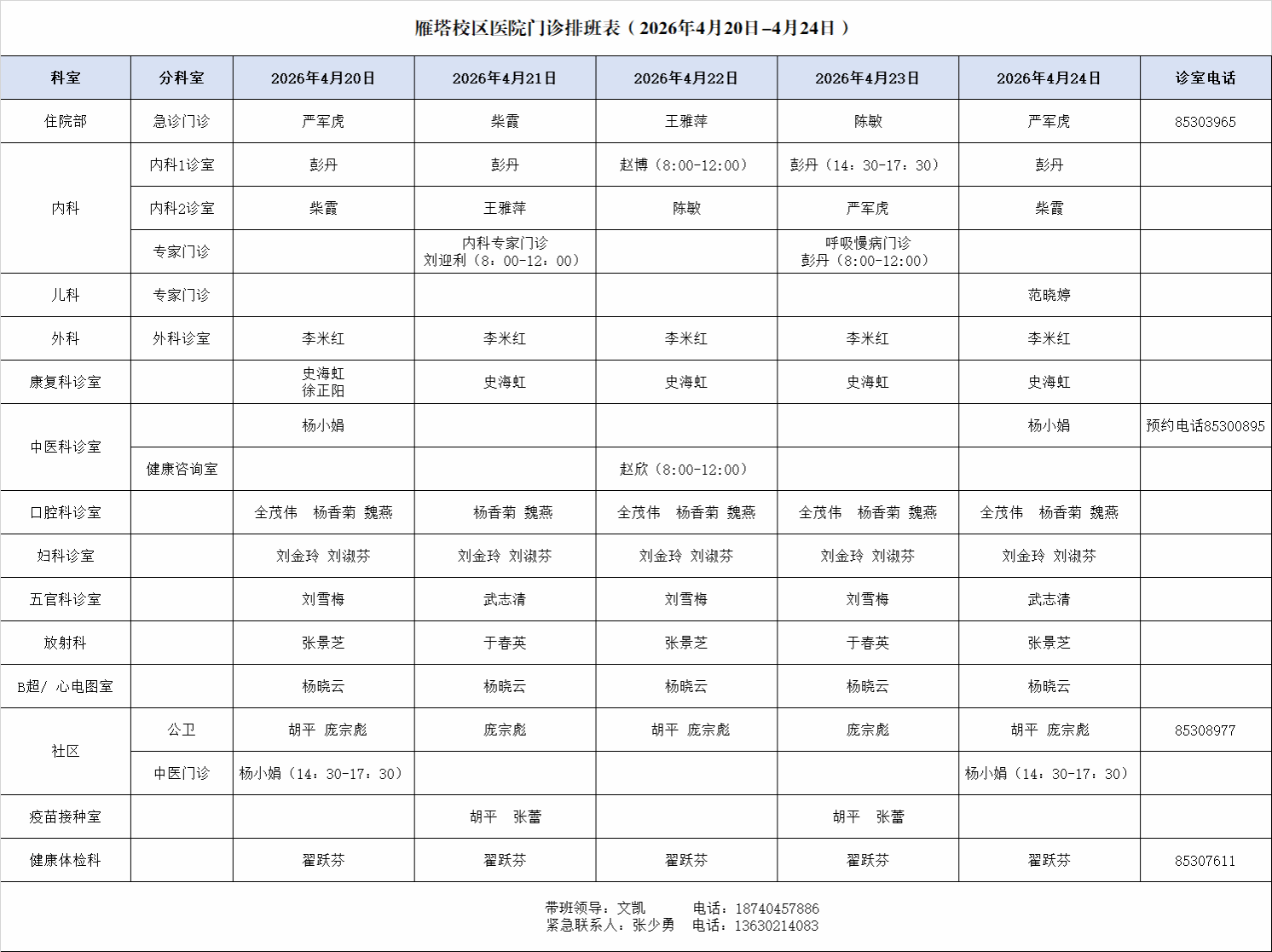 雁塔校区医院社区卫生服务站 029-85308977