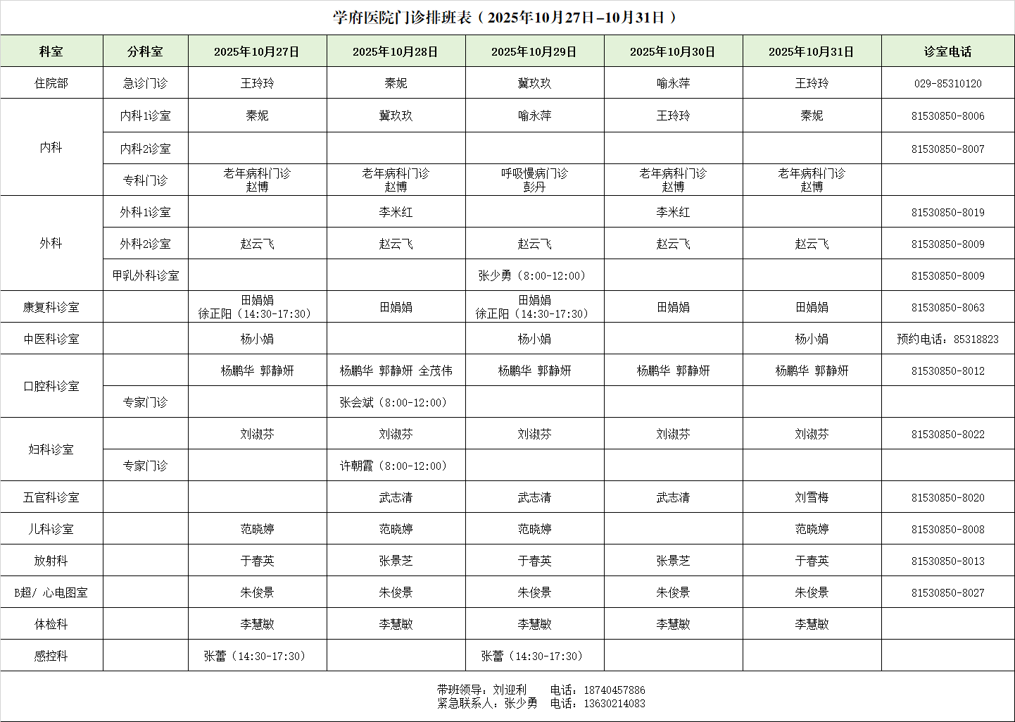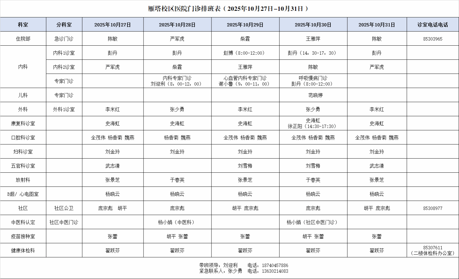 雁塔校区医院社区卫生服务站 029-85308977