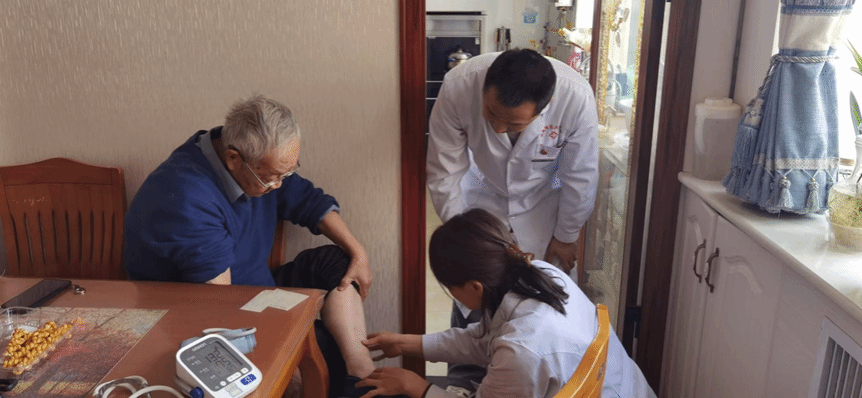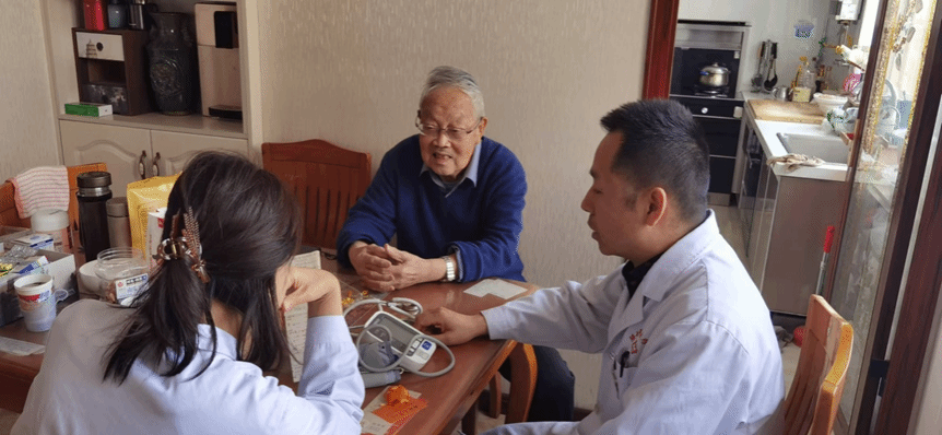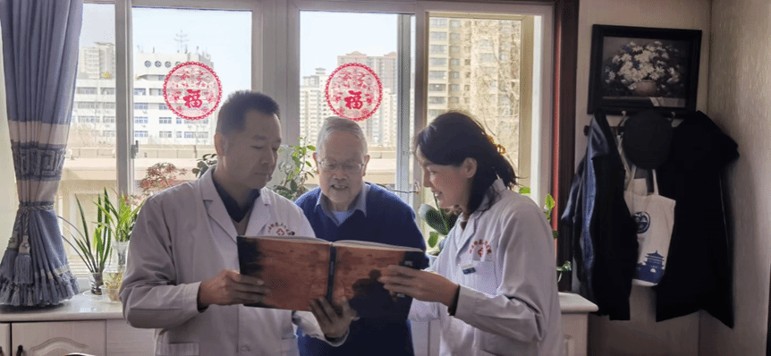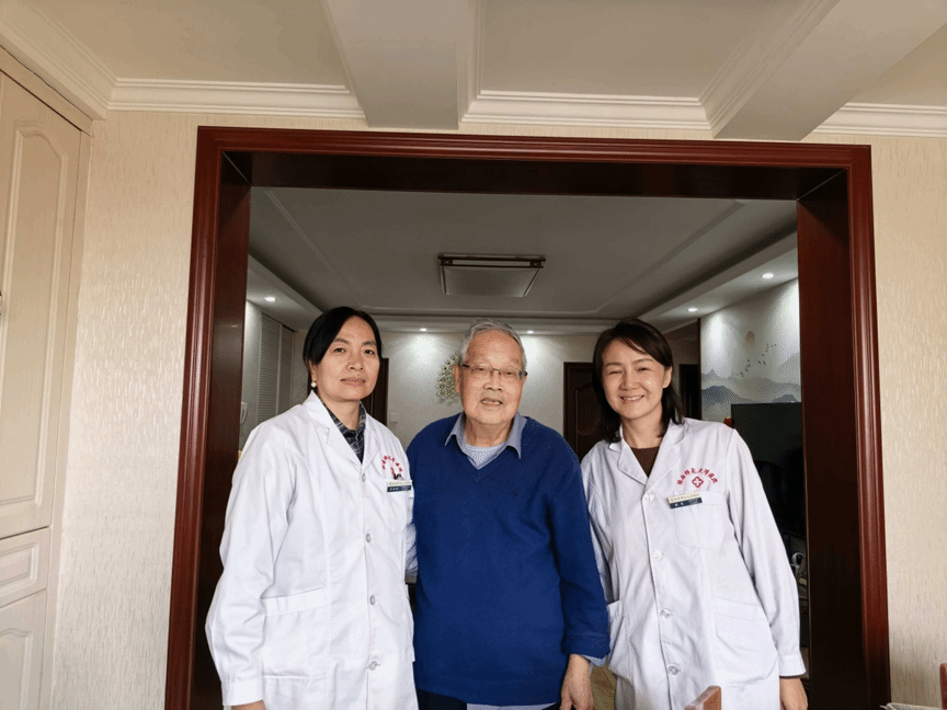 走访中,支部党员细致了解张长庚教授的生活与健康状况。张教授患有高血压,血压控制不理想且伴有双下肢水肿,医护党员为其开展心肺功能检查、血压测量等全面健康评估,详细询问日常饮食、作息与用药习惯,结合病情对用药方案进行规范化调整,耐心叮嘱低盐饮食、规律监测、适度活动等健康注意事项,并明确告知复查时间与检查项目,以专业诊疗守护老教授健康。