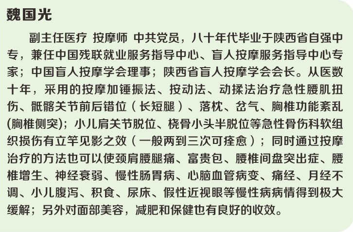 “每月一医”专题宣传第7期——魏国光副主任医疗按摩师